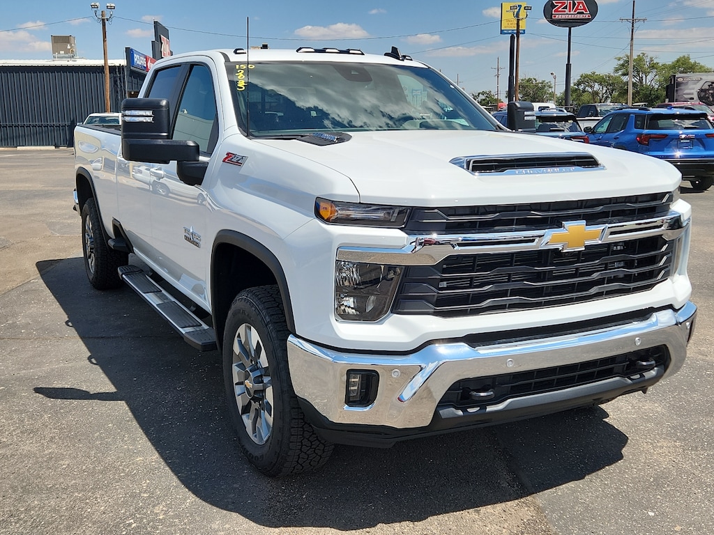 Summit White 2025 Chevrolet Silverado 2500HD LT LT1 4WD 10-Speed Automatic Duramax 6.6L V8 Turbodiesel 10-Speed Automatic 4WD Gideon/Very Dark Atmosphere Leather.