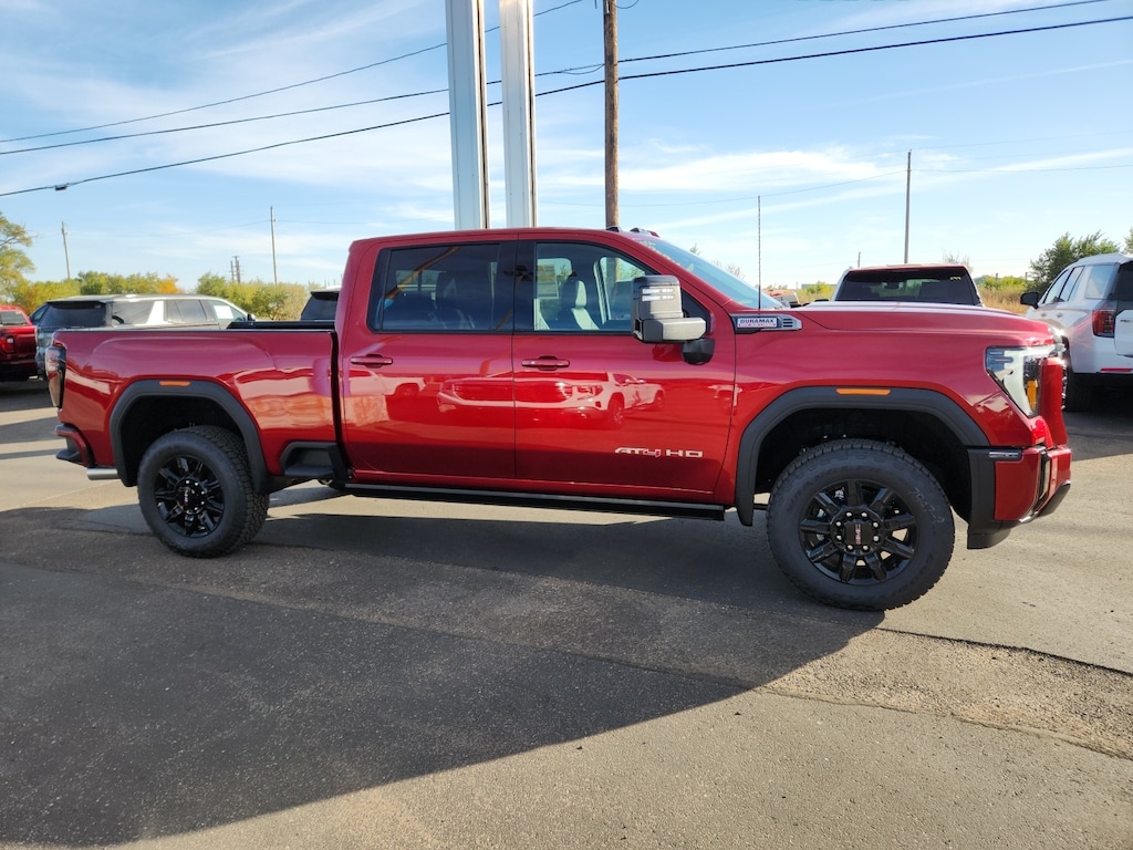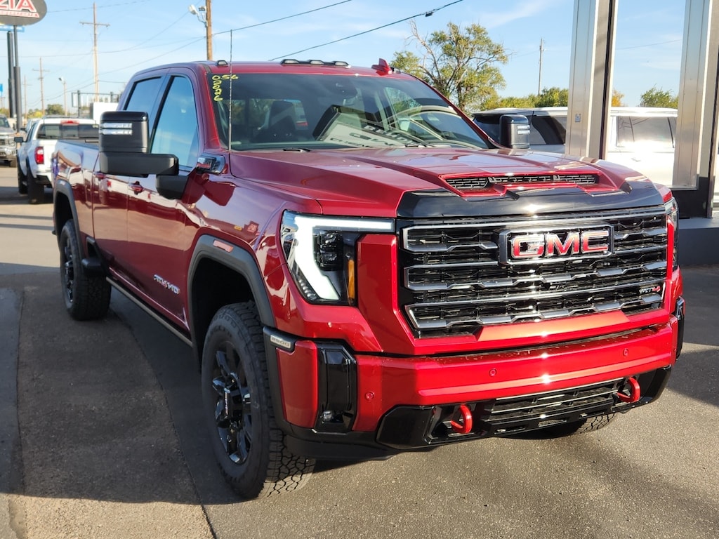 Volcanic Red 2026 GMC Sierra 2500HD AT4 4WD 10-Speed Automatic Duramax 6.6L V8 Turbodiesel 10-Speed Automatic 4WD Jet Black With Kalahari Accents Leather.Recent Arrival!